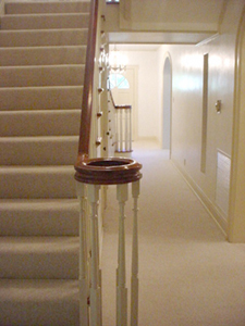 These views show how the main staircase leads upstairs from two directions,